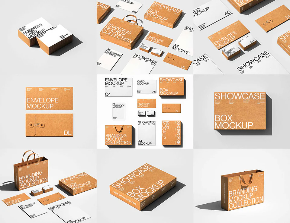 This is one of our best-selling mockup series includes branding mockup sets covering business cards, folders, letterheads, envelopes, box and paper bag mockups. This mockup series has a diverse variety of branding mockups.