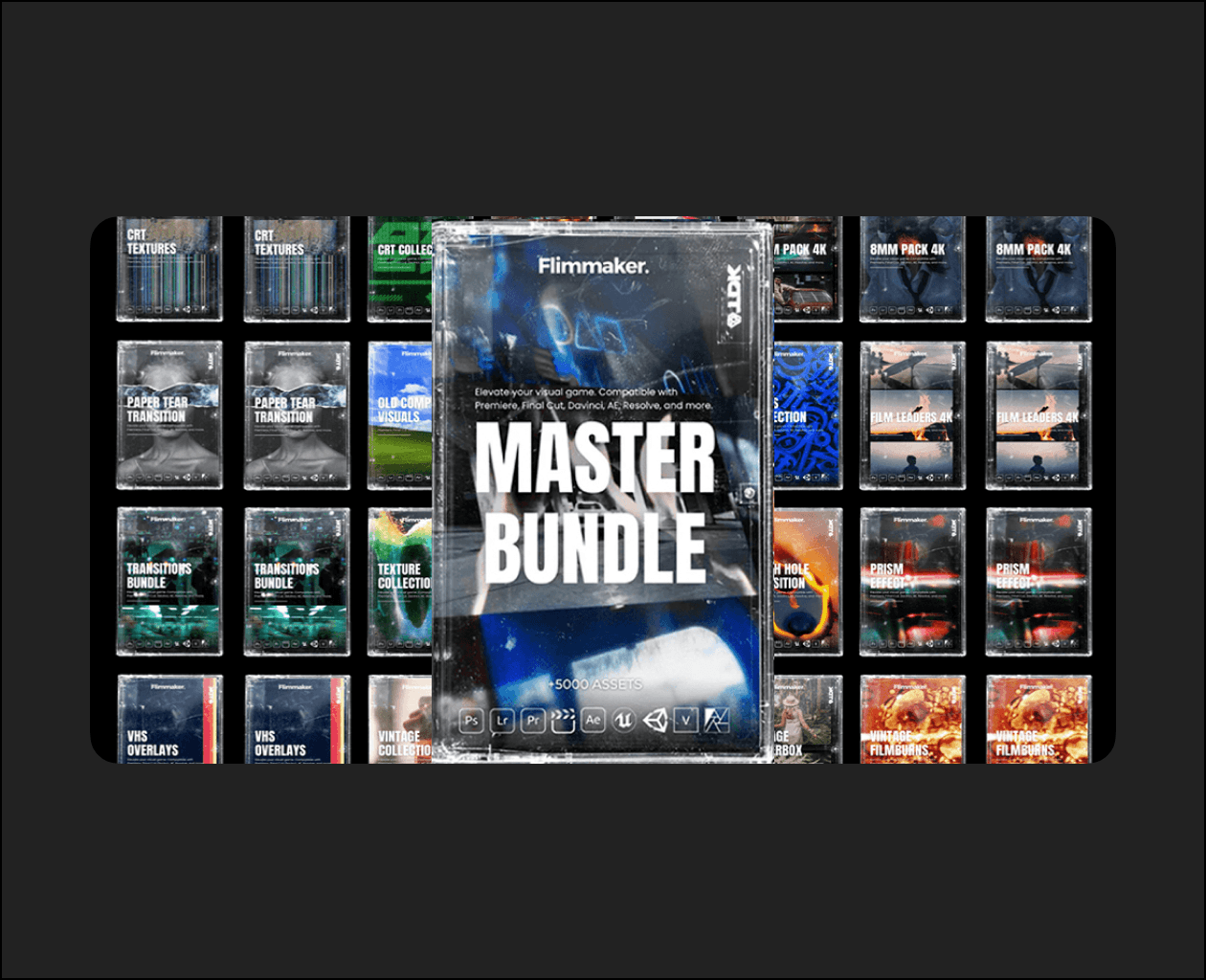 The Master Bundle is the ultimate creator’s toolkit, featuring 5000+ high-quality assets to transform your projects. This all-in-one collection includes our entire library of LUTs, textures, fonts, transitions, effects, and SFX—giving you everything you need to craft stunning visuals and immersive soundscapes.