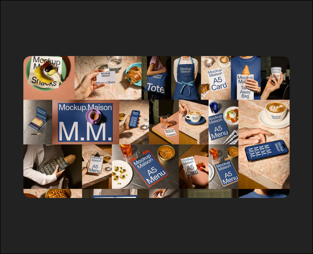 This collection includes 33 Mockups. You’ll get a variety of Apparel, Business Cards, Bags, Beverages, Cards, Coasters, Lighter and Matches, Menus, Packaging, Phones, Placemats, Paper Liners, Plates.