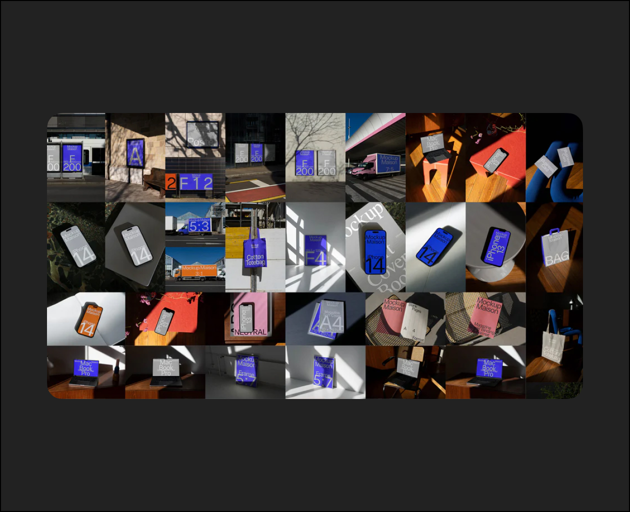 This collection includes 50 Mockups. You’ll get a variety of A-Frames, Billboards, Screens, Urban Posters.