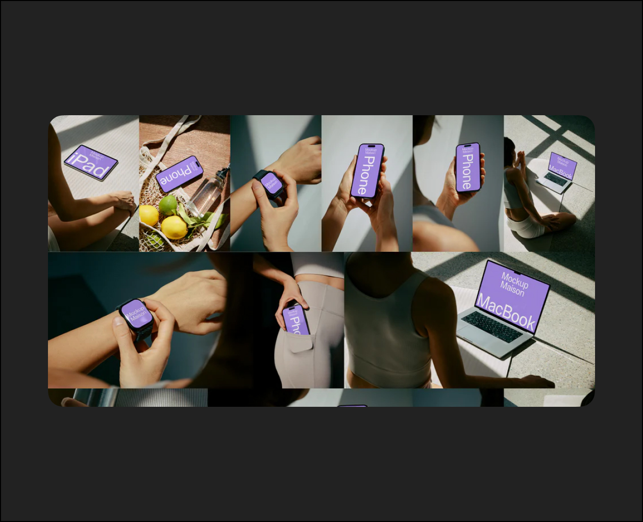 This collection includes 16 Mockups. You’ll get a variety of Laptops, Phones, Tablets, and Watches.