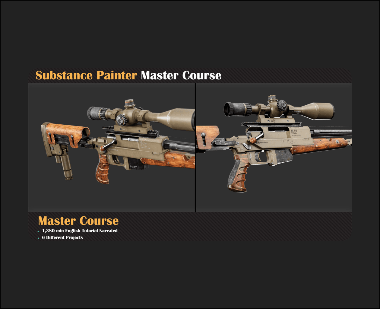 We’re going to make a cool sniper gun! Handling the textures can be tricky, but we’ll manage the details in Substance Painter. We’ll also learn about creating designs for the gun using new methods for materials like wood, metal, and plastic. After that, we’ll use Marmoset to make our sniper gun look even cooler. And guess what? There’s a bonus chapter on Unreal Engine. We’ll show you how to set up textures in Unreal Engine for an extra touch. Ready to dive in?
